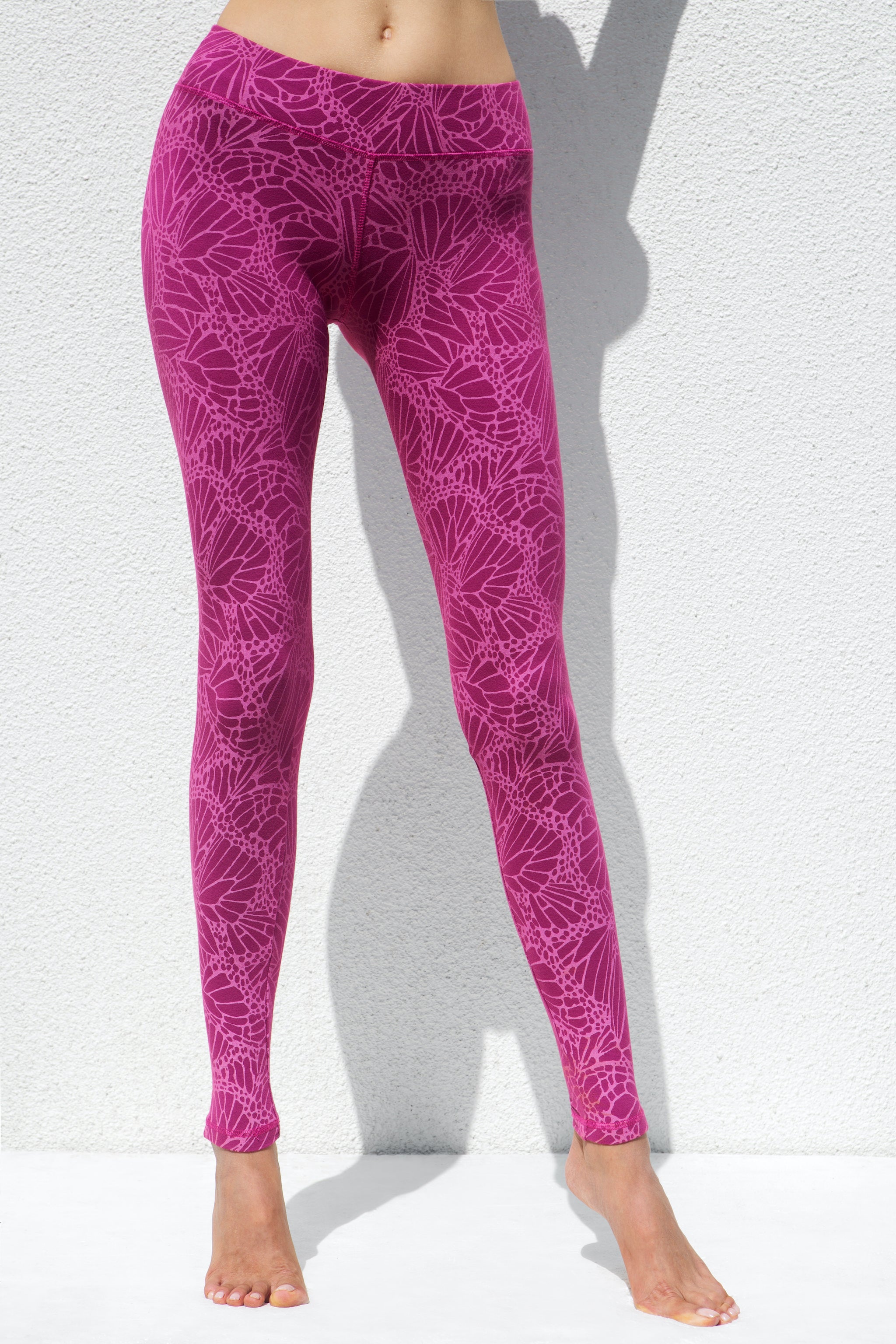 Een fantastische fuchsiaroze legging met vlinderprint. Handbedrukt door ons fantastische team in Bali, Indonesië. Gelimiteerde oplage!