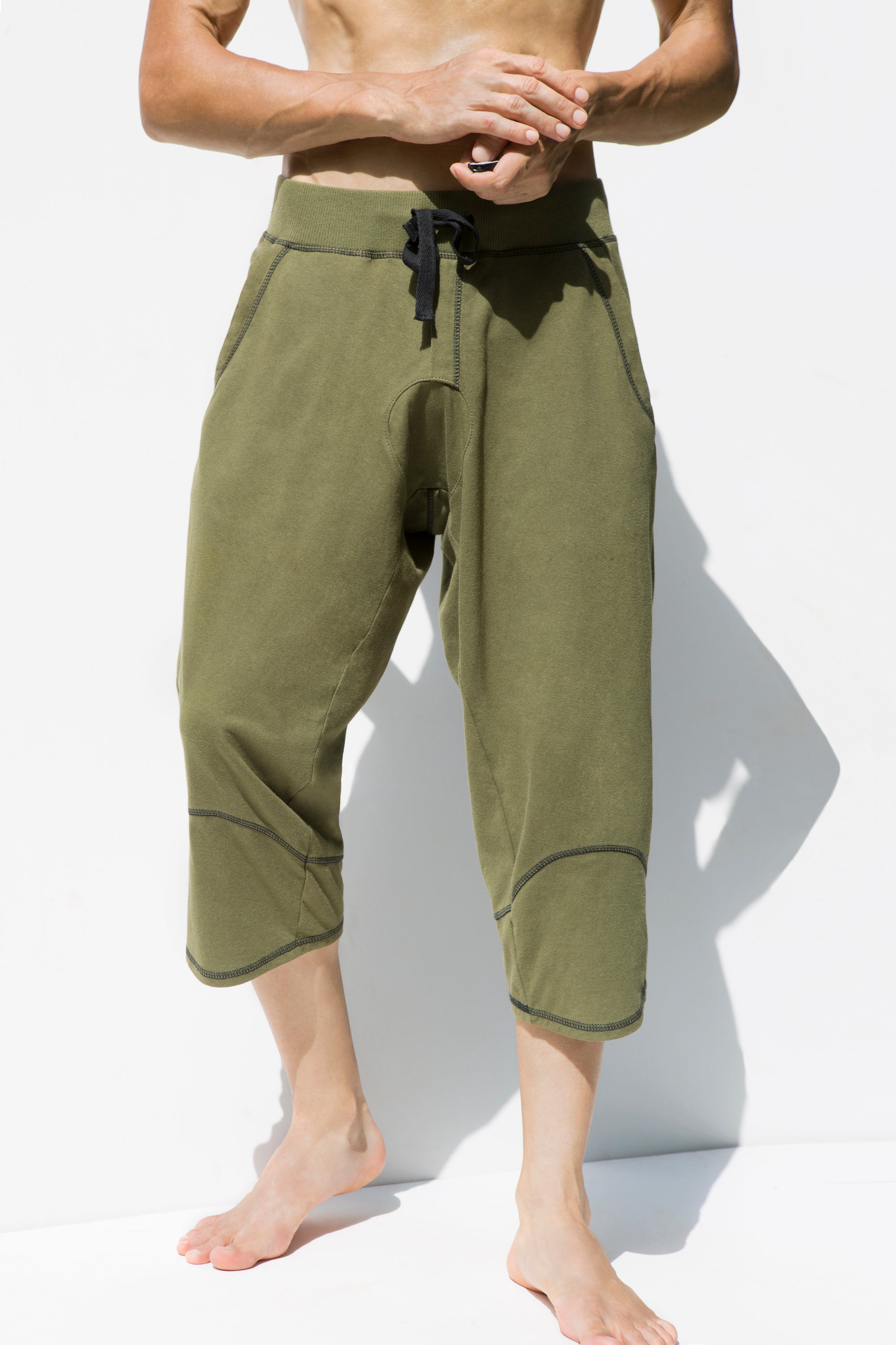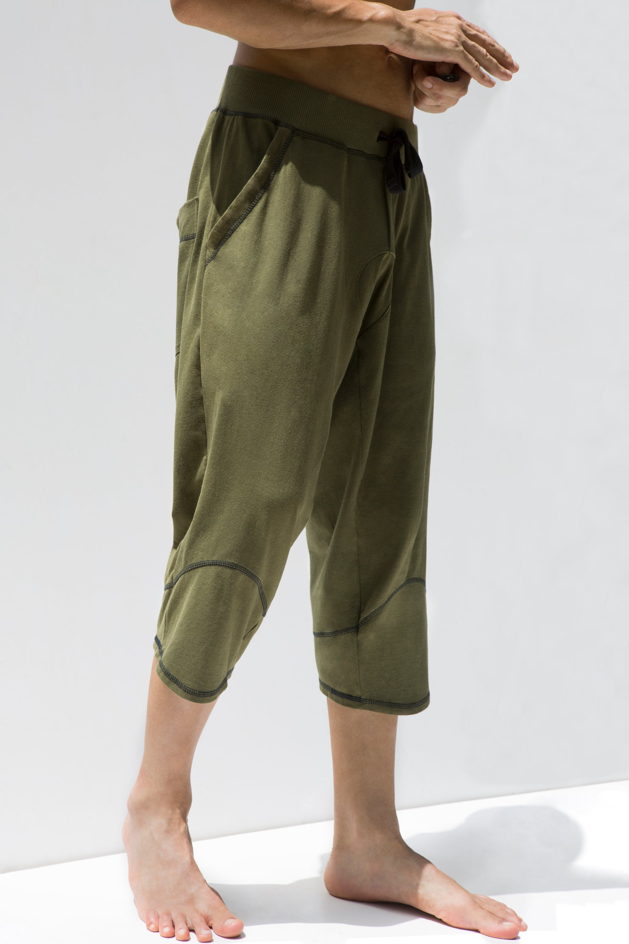 Heren 3/4 Broek - Yoga Heren Capri - Olijfgroen