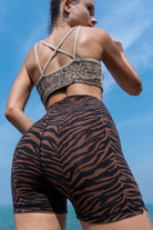 Deze bruin-zwarte zebra high-waisted hotpants of shorts zijn perfect voor elke activiteit; voor (Bikram-)yoga, boksen of andere sporten. Ook ideaal voor op het strand. Ze blijven perfect in vorm, zelfs als ze nat zijn.