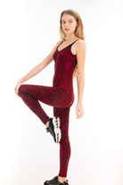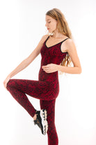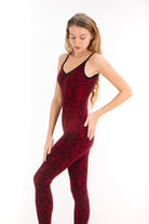 Deze rode catsuit heeft een zwarte slangenprint, wat hem een ​​slinky, opvallende look geeft. Hij is perfect om zo te dragen om je lichaam te showen, of te combineren met een minirok, short of een losse top. Het is een simpele en fantastische aanvulling op je garderobe. De rode catsuit met zwarte slangenprint van Funky Simplicity is ideaal om te dragen naar je yoga- of pilatesles, om thuis te chillen of voor een avondje uit, want hij behoudt zijn vorm, wat je ook doet.