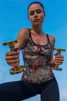 Gemaakt van prachtig crèmekleurig katoen-spandex met een zwarte Nagomi-print met rode koi-vissen. Ook verkrijgbaar met onze andere prachtige Nagomi-prints.