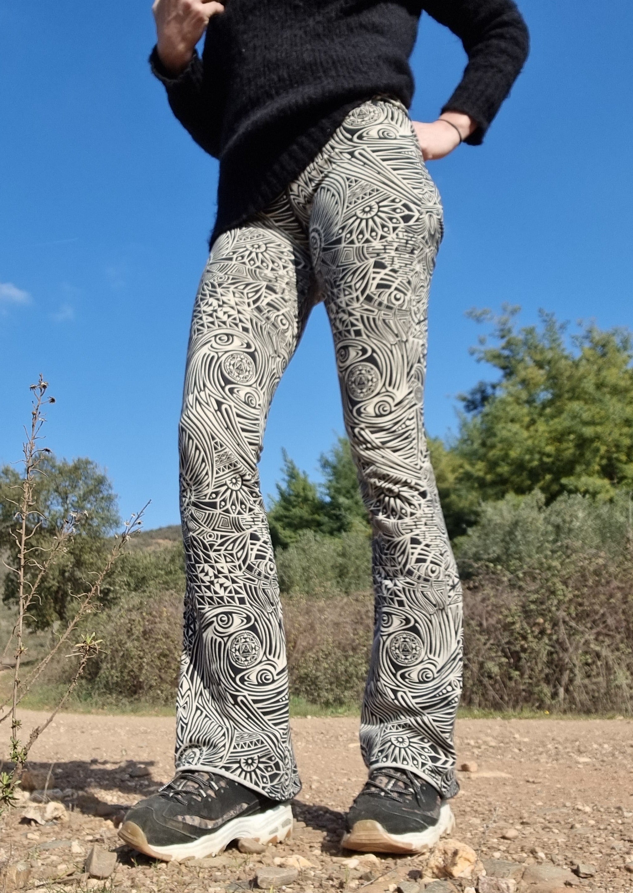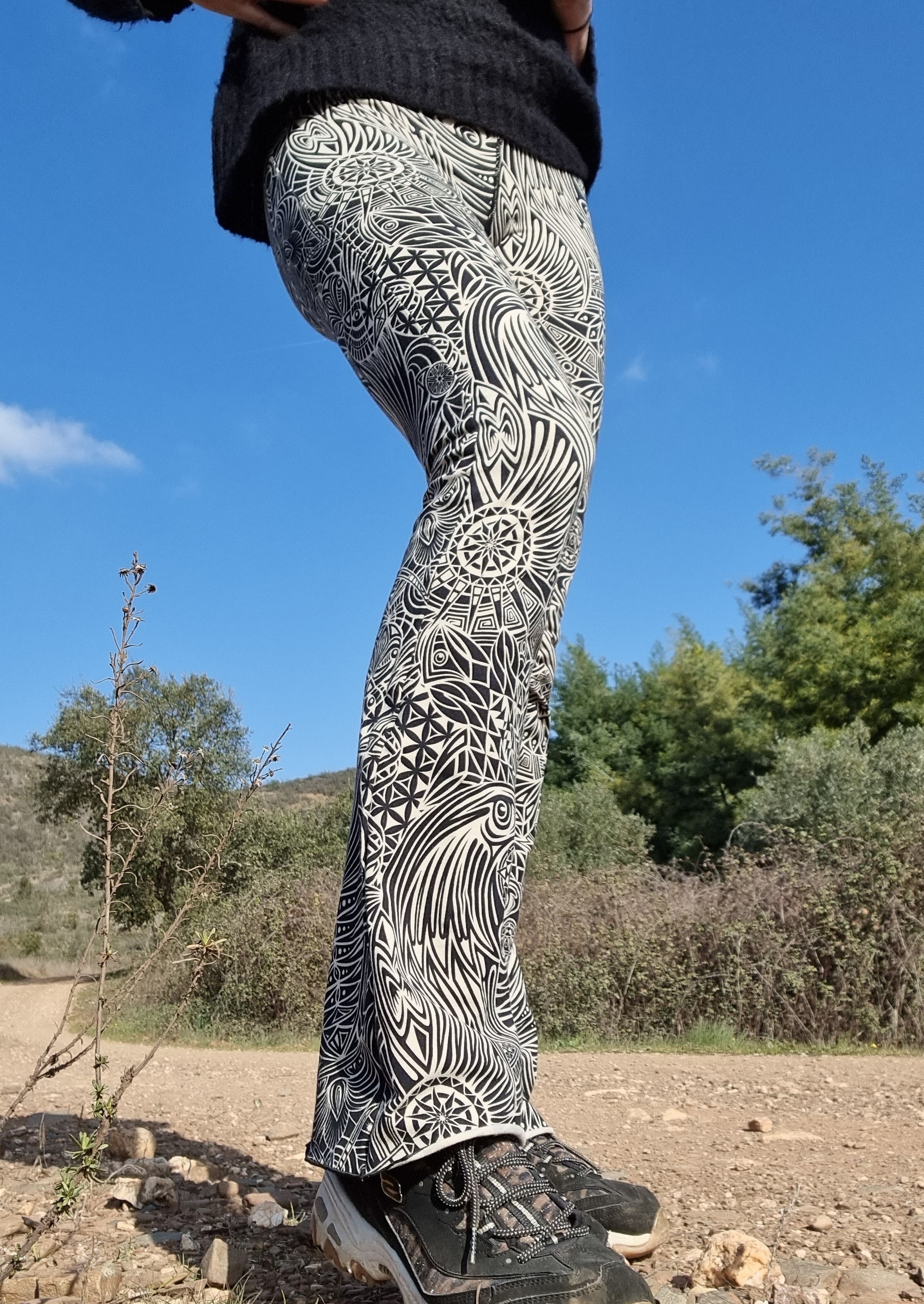 Onze flared broeken zijn gemaakt van dik 90% katoen-lycra (10%), dezelfde kwaliteit als onze leggings, alleen dan dikker.
