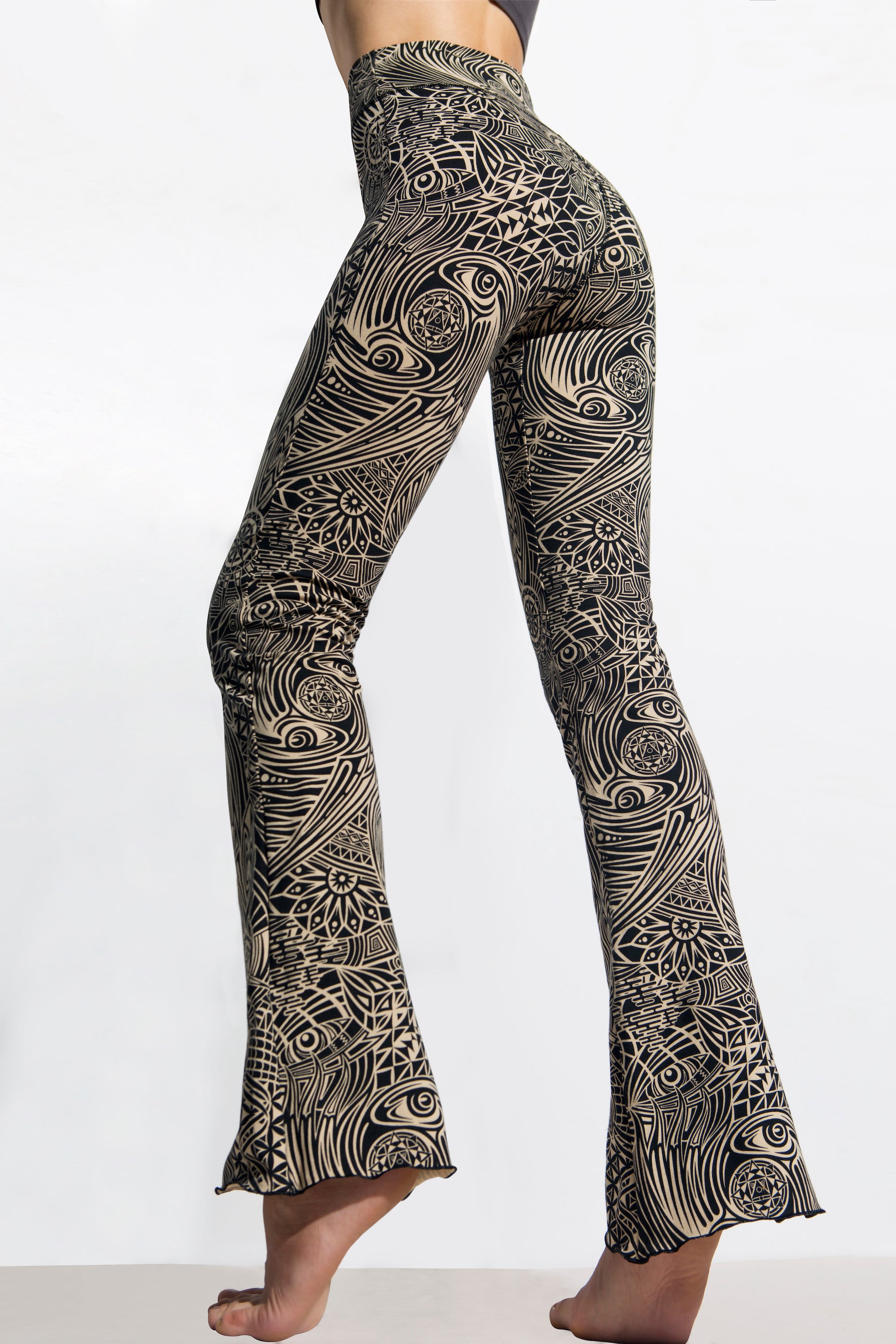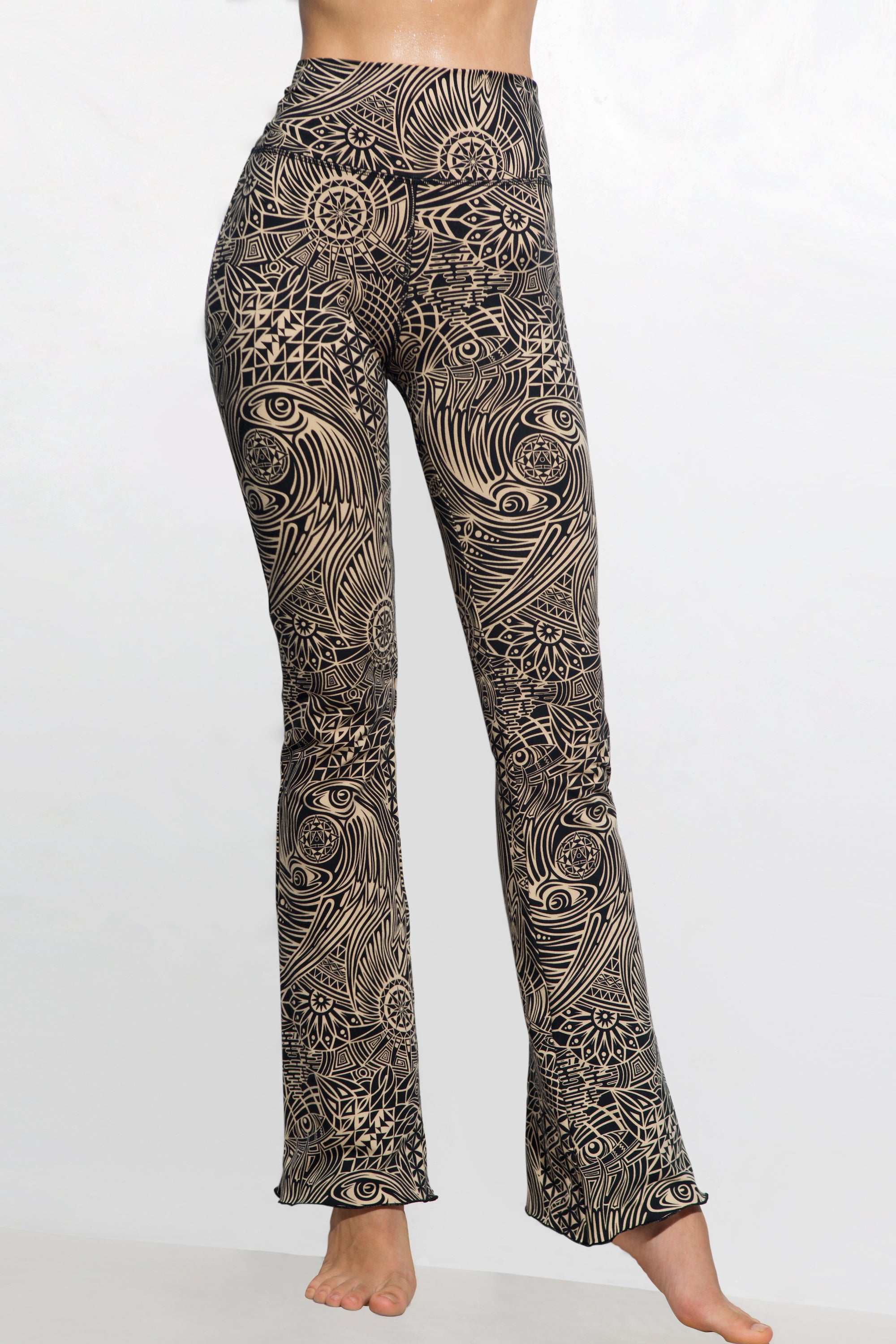 De crèmekleurige tribal bootleg leggings van Funky Simplicity zien er niet alleen fantastisch uit, ze zitten ook heerlijk. Ze zitten zo comfortabel dat je ze al jarenlang met succes draagt ​​en ze gewoon niet meer uit wilt trekken. Ons Flare-broeken lopen licht uit vanaf de knie. Ze hebben een superhoge tailleband voor optimaal comfort en stijl.