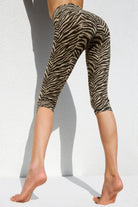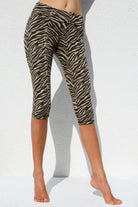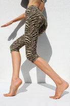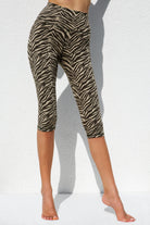Deze Super High Waist Cream Capri 3/4-broek met olijfgroene zebraprint is gemaakt van de beste kwaliteit katoen en spandex, zodat hij lang meegaat en jarenlang meegaat.